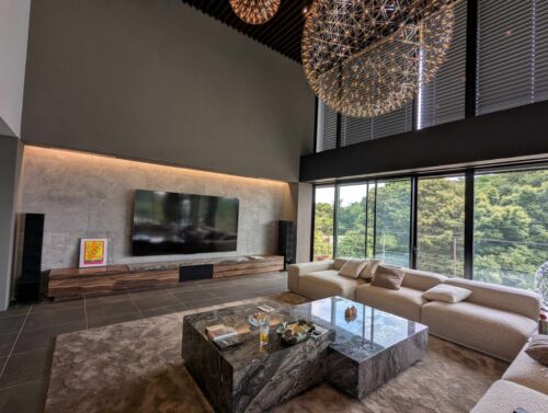 既存宅にて家族みんなが楽しめるプレイルームシアターを導入させていただきました。
