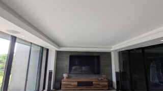 天井の梁や奥行きによってはスピーカーや昇降装置が設置できない場合や、位置の変更を余儀なくされる場合があります。建築施工上難しい場合は、打合せ後、商品の変更を行う場合もあります。